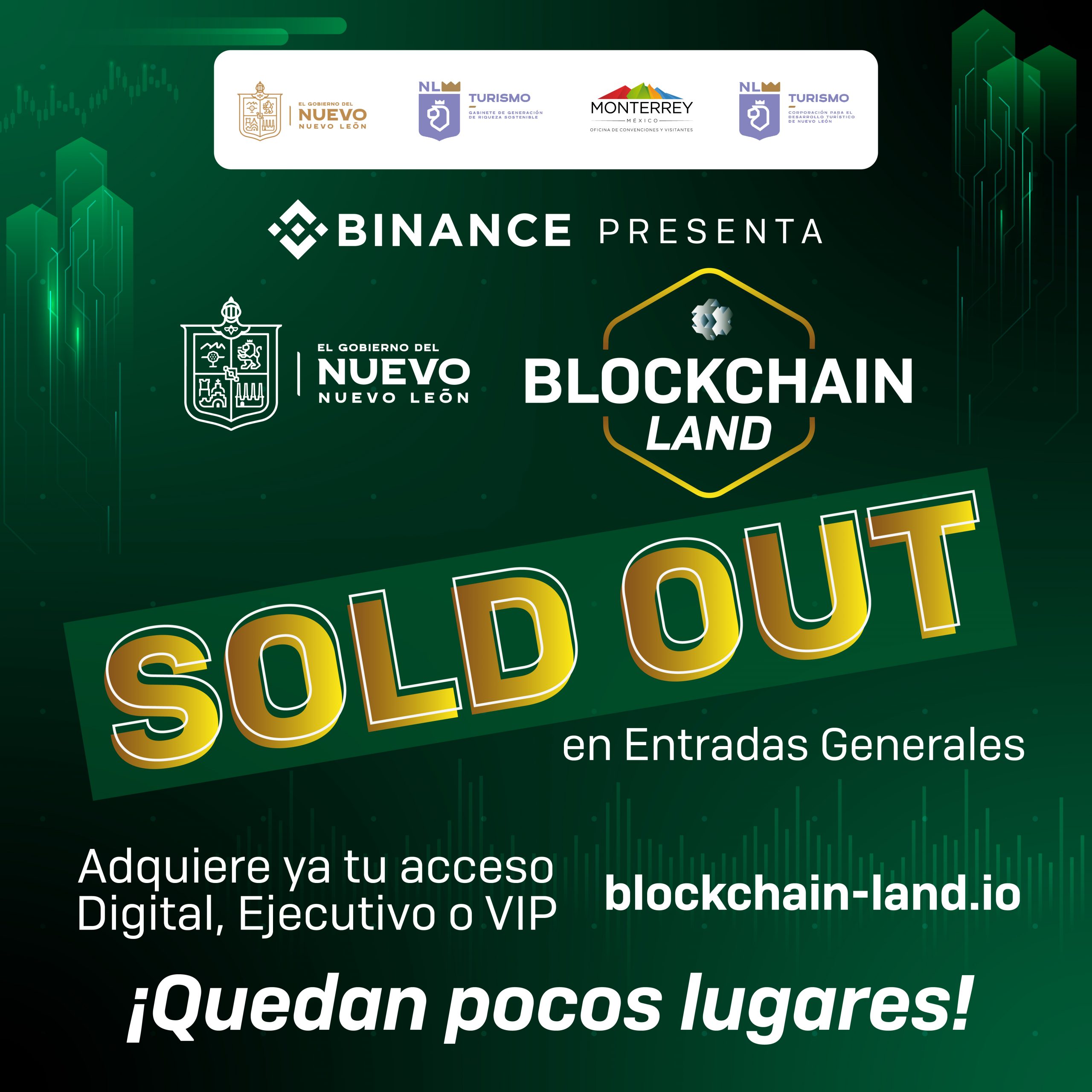 A tan sólo 10 días de que se realice Blockchain Land Nuevo León  2022, del 05 al 07 de octubre en Cintermex,  las entradas generales presenciales están agotadas. De esta manera oficialmente Blockchain Land Nuevo León se convierte en el mayor evento de su tipo en español del mundo.